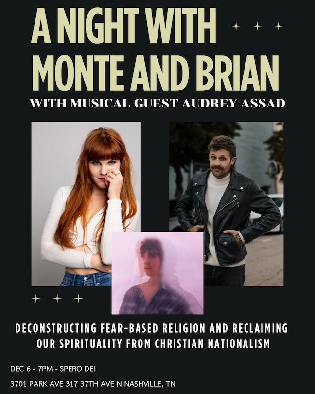 Those of us who have a complicated relationship to their faith upbringing often get a lot out of being around other people who feel the same way. This event is for anyone who is interested in a discussion around faith, fear, and politics, regardless of background. I’ll be singing a few songs here and there, and I’m looking forward to sharing a room with Brian and Monte; and maybe you too! (Beer and wine included with ticket purchase) Get tickets here.
